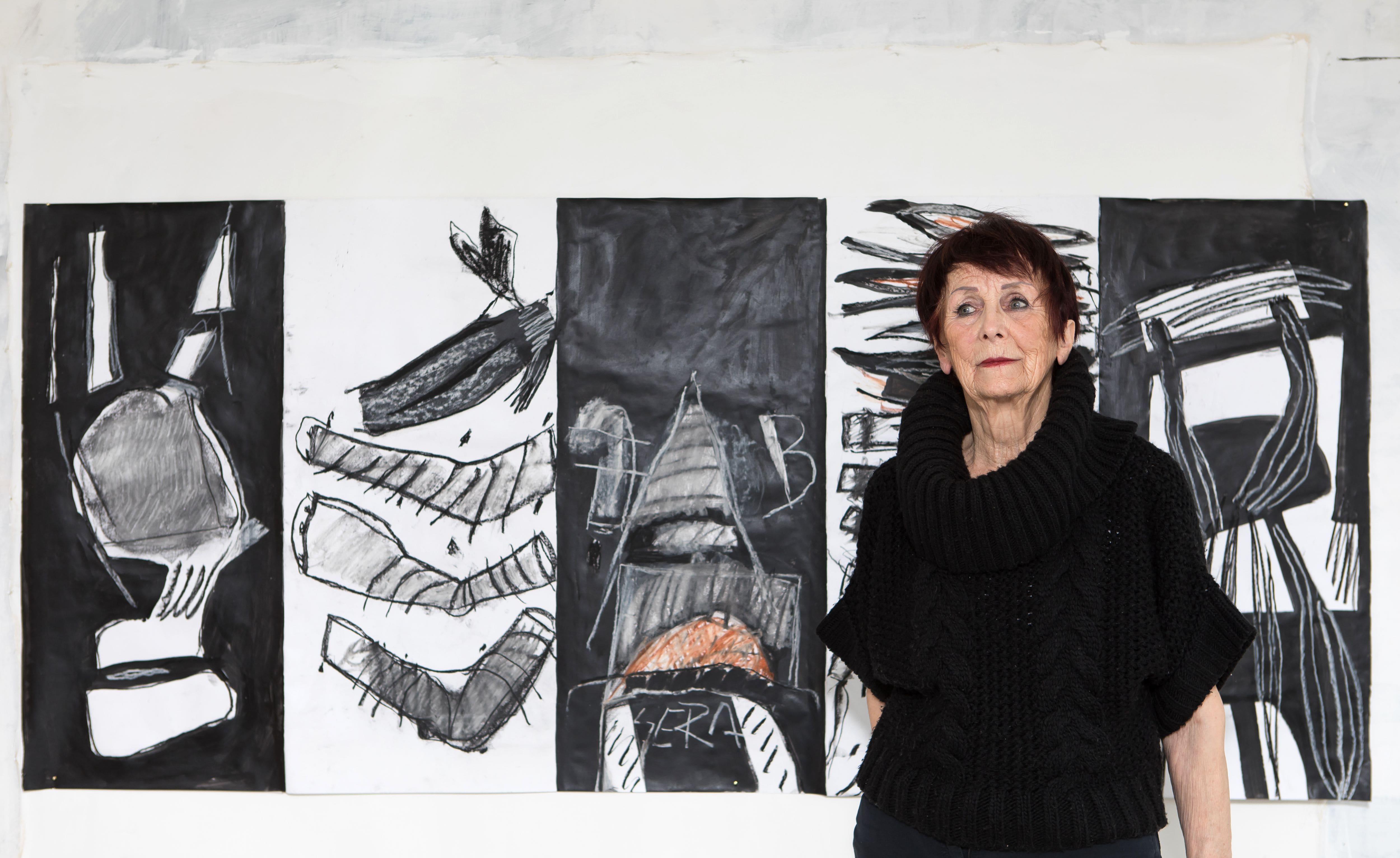 Häufig steht der Tod im Vordergrund und der Glaube an eine ferne Zukunft. Ihre Auseinandersetzung mit Farbe und Form spiegelt das Ringen der Künstlerin mit ihrem eigenen Dasein wieder, ein Ringen um Ursprünglichkeit und Aussagekraft fern jeder Eitelkeit.