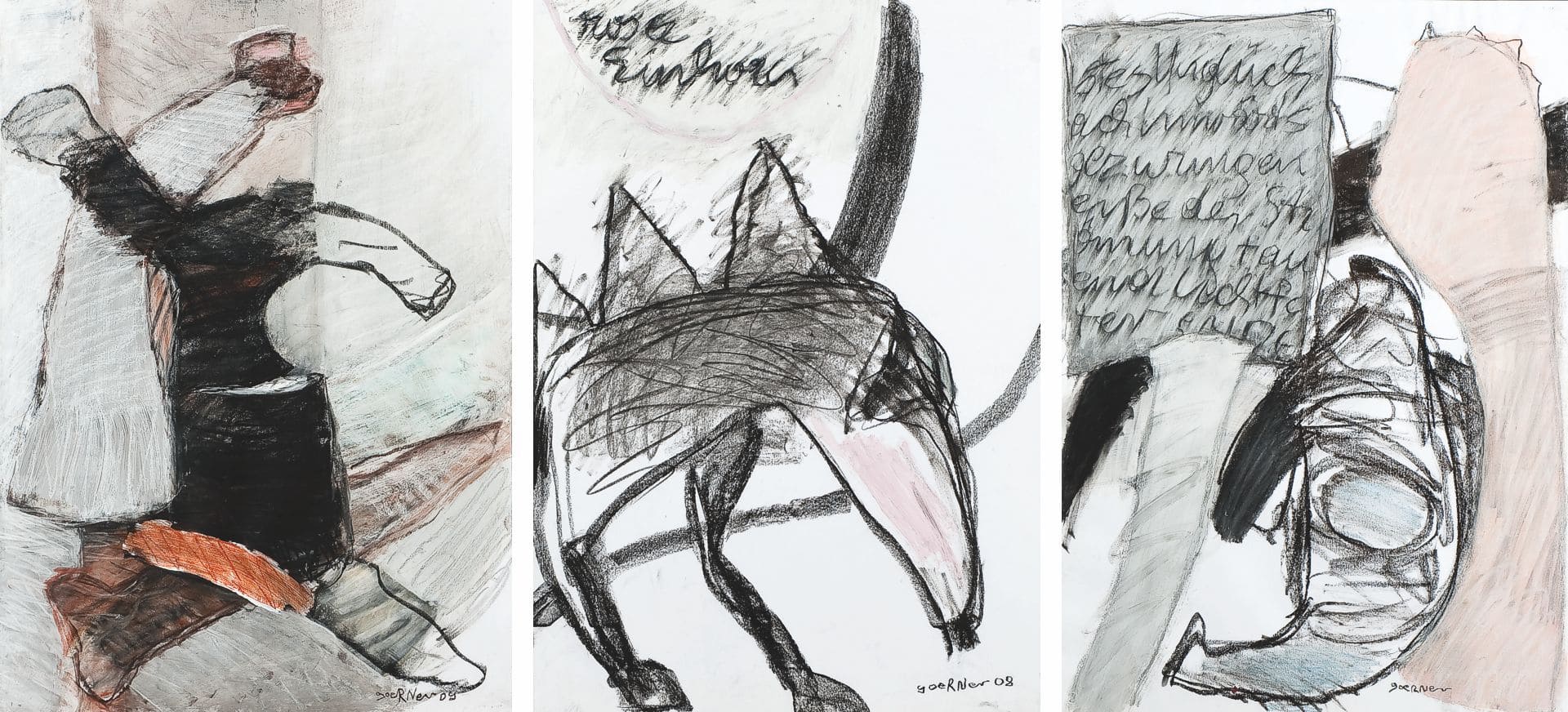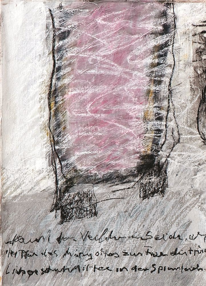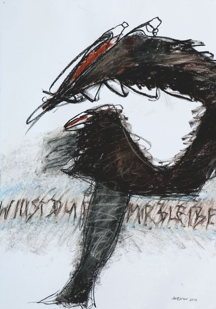 Diese 2 Phasen stehen im Zentrum des Künstlerlebens. Vor die leere Leinwand zu treten und sich der Auseinandersetzung zu stellen und der momentanen Leere Herr zu werden, sich seiner eigenen Kleinheit bewusst zu sein und einem fremden Diktat zu folgen. Eine unbiegsame Faust lässt mich durchleben – durchleiden die Momente des Schöpfens - ES geschieht. Nur kurz – die Kraft der Hingabe liegt über allen Sinnen- doch der Engel des Irrtums – manchmal nur ein Strich zuviel ist immer da und lässt manchmal klein bleiben was Klein ist.