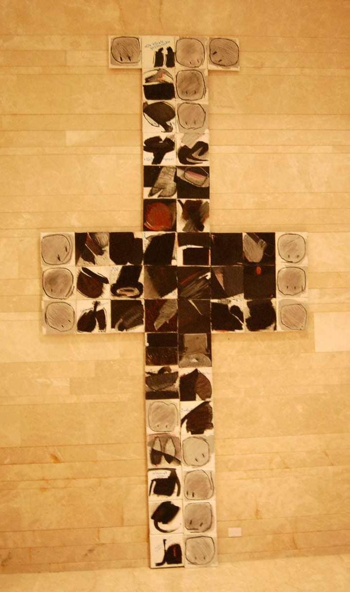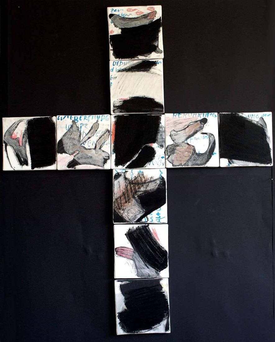 Eine Personale im WUK Währinger Strasse in Wien, in den Ausstellungsräumen der INTAKT - Kreuze, sehr viele Kreuze und Hochformatiges neben den – natürlich Leporellos...